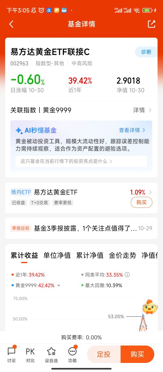 再者,从资产配置角度看,黄金与股票、债券相关性较低,适当配置有助于分散风险。易方达黄金ETF联接C这类产品门槛低、操作便捷,尤其适合作为普通人长期积累黄金资产的工具。