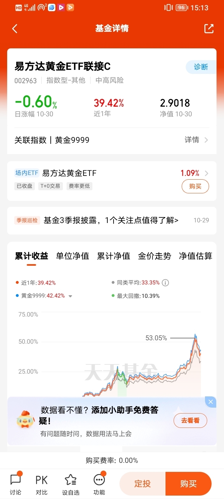 易方达黄金ETF联接C基金没有申购费,持有超过30天无赎回费,这为中长期投资者提供了很大的灵活性。投资者可以根据市场情况灵活调整投资策略,如逐步加仓积累筹码。