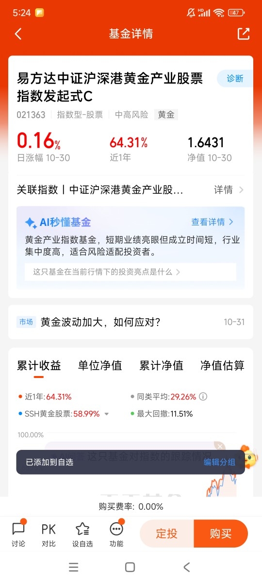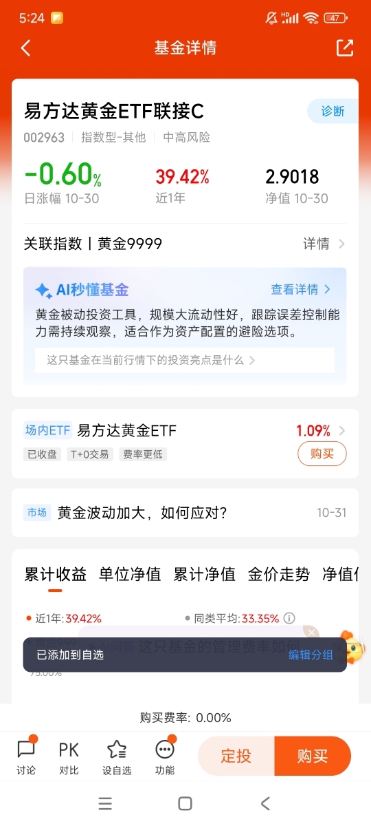 我认为金价会继续上涨,全球央行还在持续放水,货币供应量不断增加,而黄金的总量是有限的,这种供需关系长期来看对金价有利。另外,地缘政治风险一直存在,比如俄乌冲突、中东局势等,这些不确定性都会推动资金流入黄金。再加上通胀虽然短期可能回落,但长期来看很难完全消失,黄金作为抗通胀资产,需求自然会持续。$易方达黄金ETF联接C$ 对标国际金价,相比实物黄金,交易更方便,门槛也低,适合普通投资者。长期来看,我会通过定投的方式逐步买入,低买高卖,平滑市场波动。黄金是资产配置的压舱石,能平衡投资组合的风险,所以我愿意长期持有,静待花开。