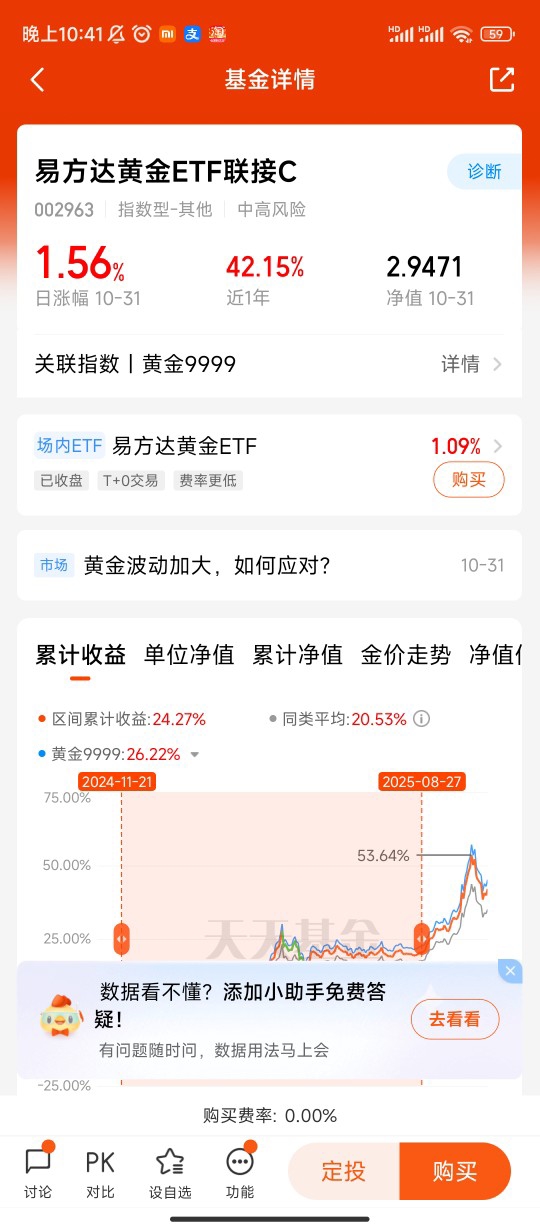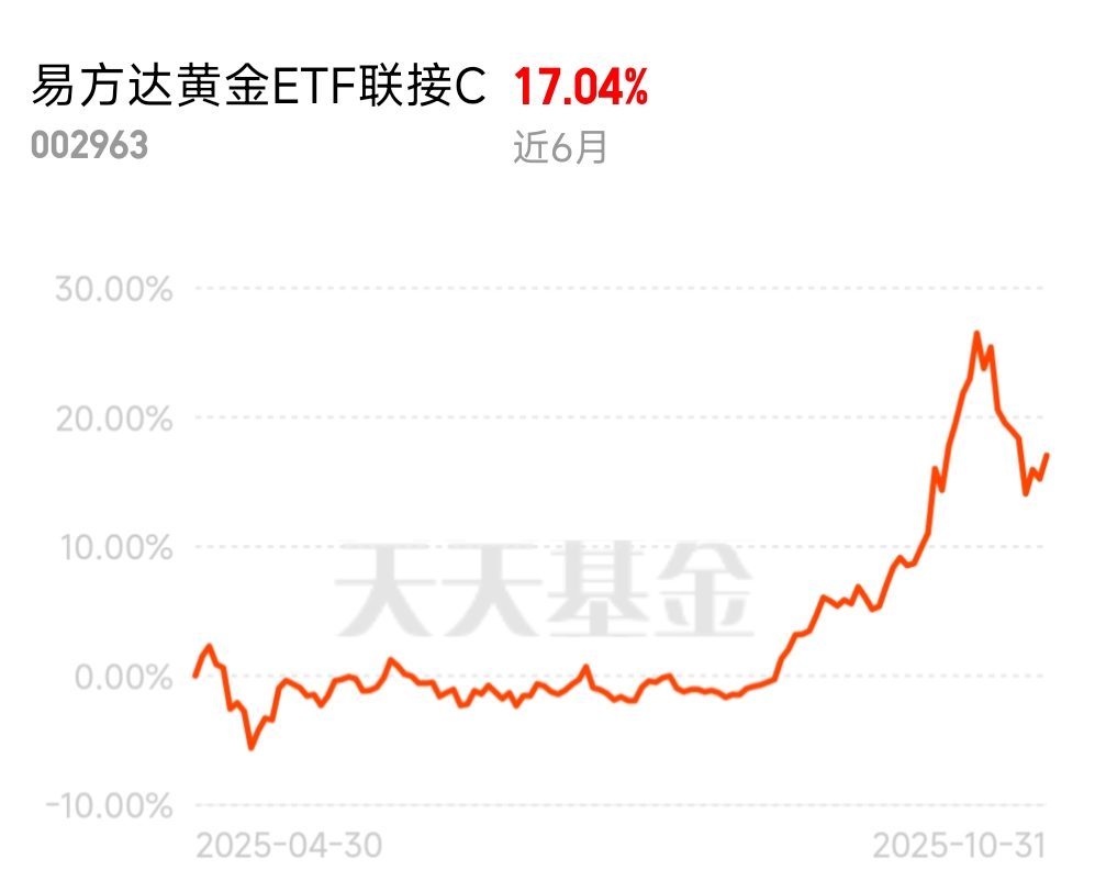 易方达黄金ETF联接C(002963)是应对金价波动的优质布局选择,核心逻辑如下: