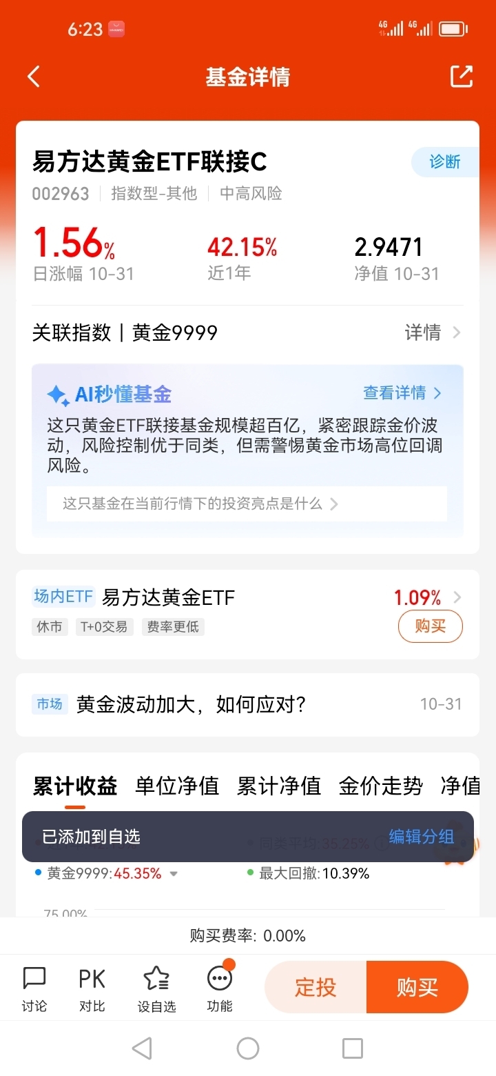 综上所述,我关注了易方达黄金ETF联接C(002963),因为鲍杰基金经理的投资经验相当丰富。@易方达基金