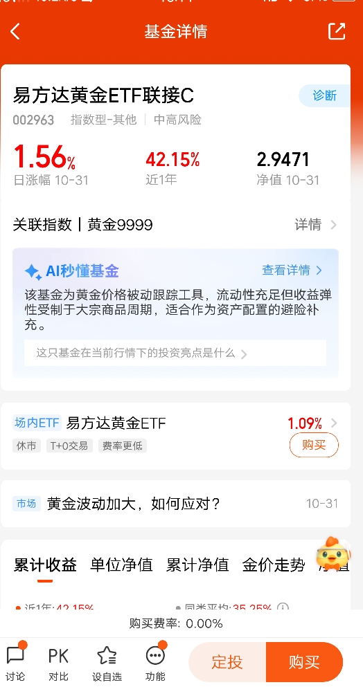 我选择“以不变应万变,暂时不操作”,黄金价格目前虽然处于高位,但我们也不清楚它未来是上涨还是下跌,但我知道它的长期走势一直是向上的。所以我选择不操作,只要能拿住,黄金价格长期上涨的逻辑是不变的,不管它是处于上涨周期还是下跌周期中,它的价格从长期看是一直在创新高的,所以不操作才是正确的选择。$易方达黄金ETF联接C$ @易方达基金