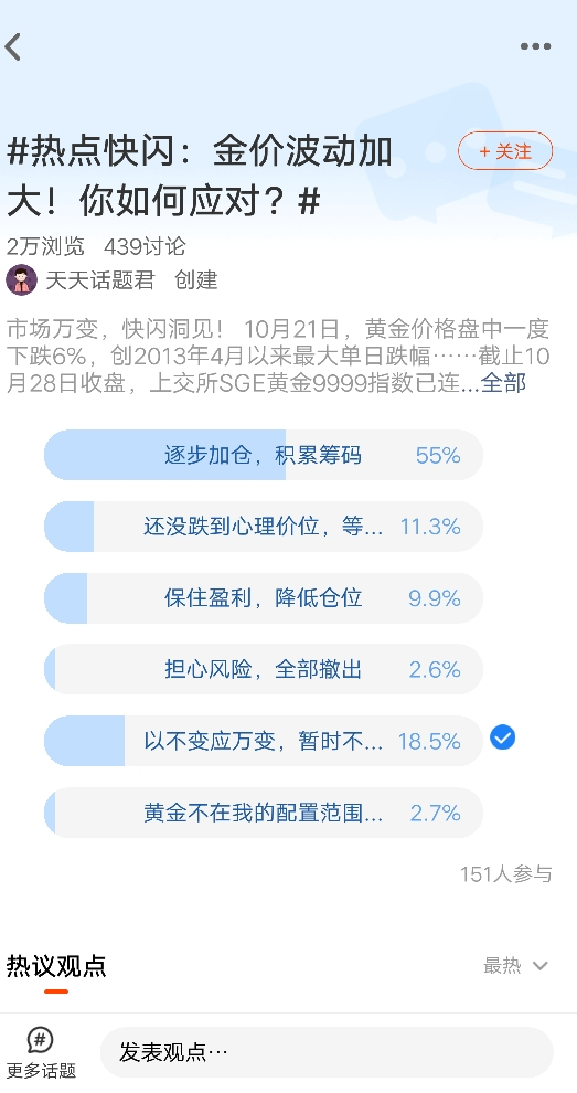 我选择“以不变应万变,暂时不操作”,黄金价格目前虽然处于高位,但我们也不清楚它未