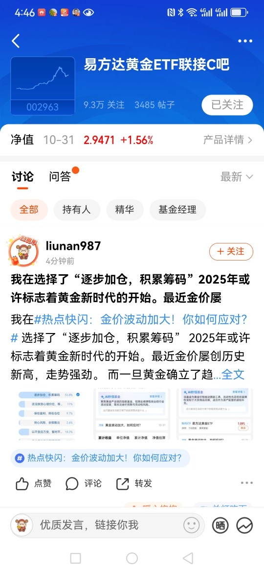 我在#热点快闪:金价波动加大!你如何应对?# 选择了“逐步加仓,积累筹码”