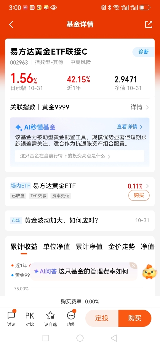 我在选择了“逐步加仓,积累筹码”今年以来,黄金价格屡创新高,截至10月已实现超过