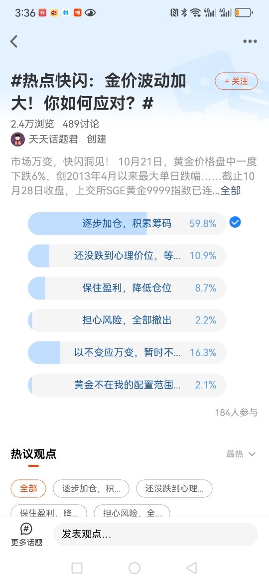 我在#热点快闪:金价波动加大!你如何应对?# 选择了“逐步加仓,积累筹码”