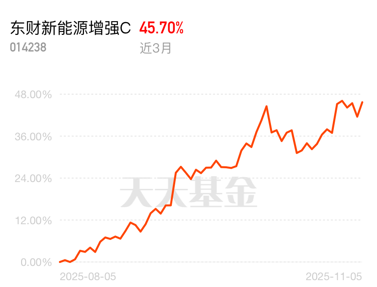 市场风险偏好回升,高成长的新能源板块成为资金首选,涨势领先其他赛道。西藏东财中证新能源指数增强C近3个月收益45.70%,把握风险偏好回升机会,赚高成长的钱。$东财新能源增强C$