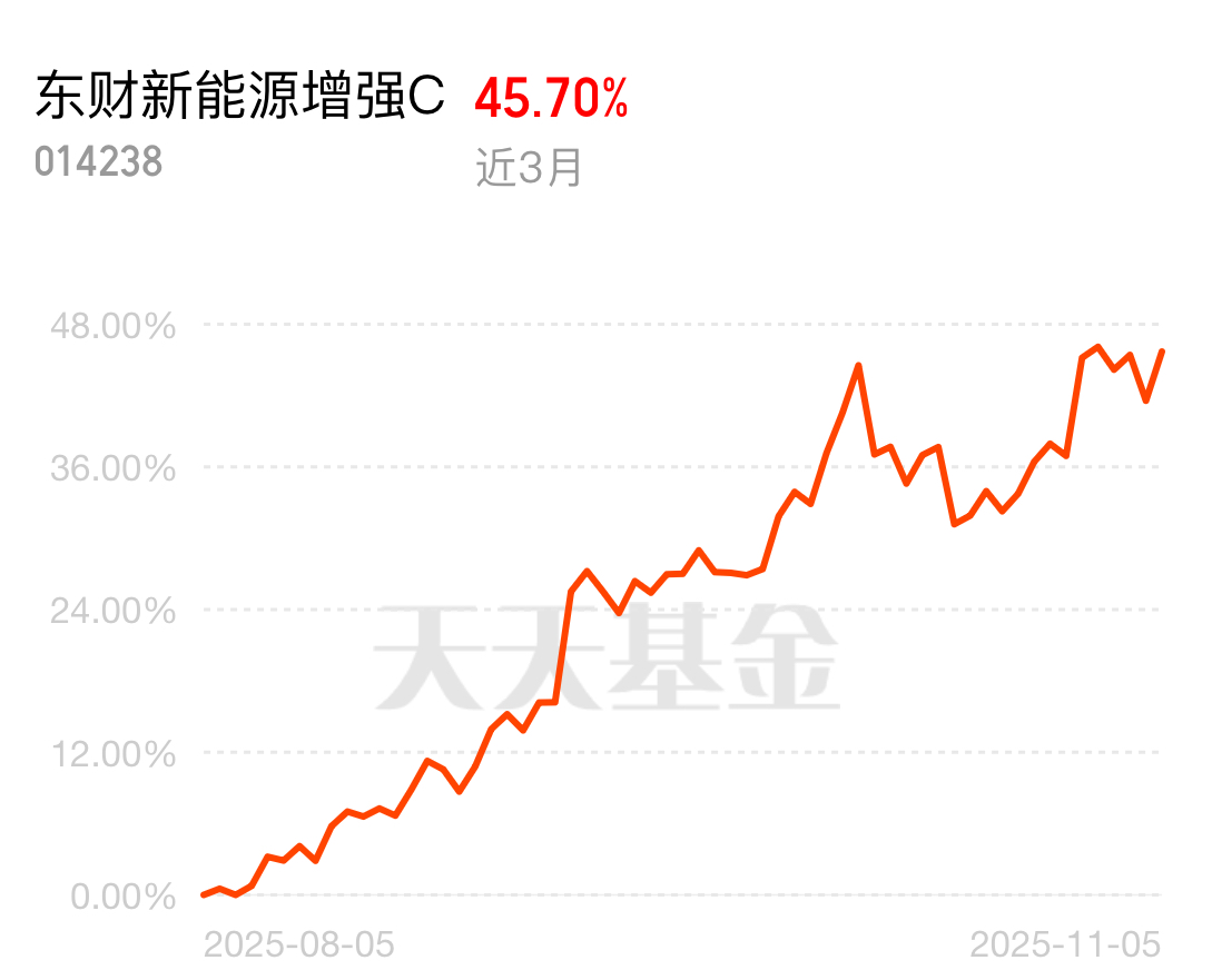 光伏逆变器企业净利润暴增8倍多,带动整个光伏设备板块情绪高涨,涨势喜人。西藏东财中证新能源指数增强C近3个月涨45.70%,踩中业绩爆发节点,赚钱效应拉满。
