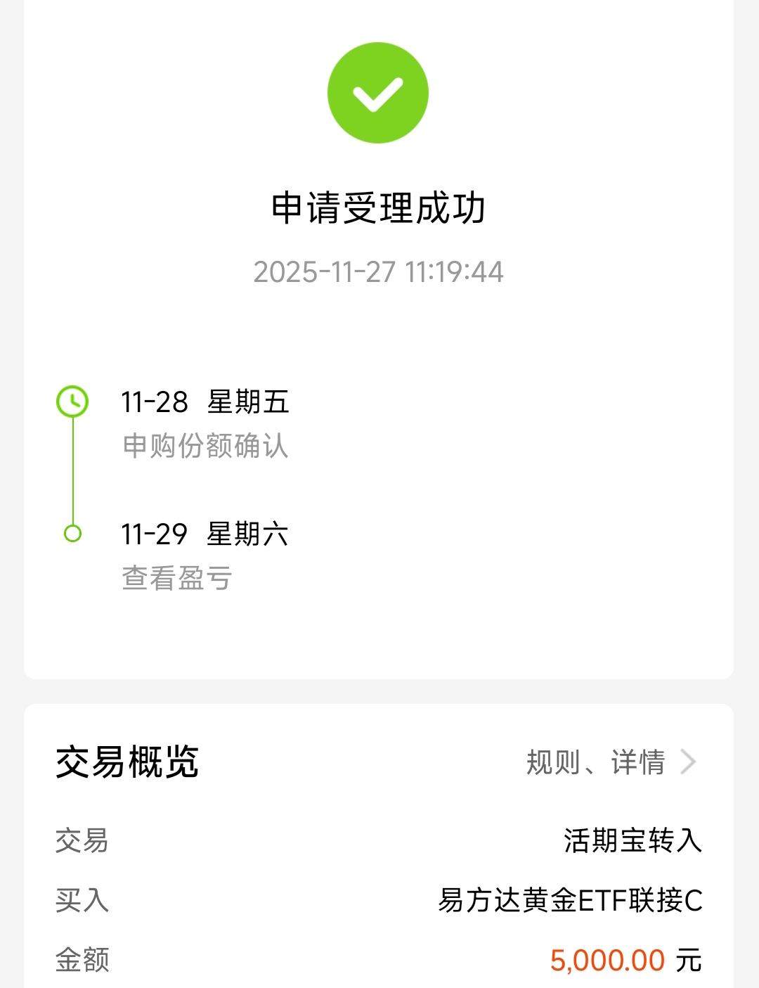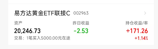 加了5000$易方达黄金ETF联接C(OTCFUND|002963)$