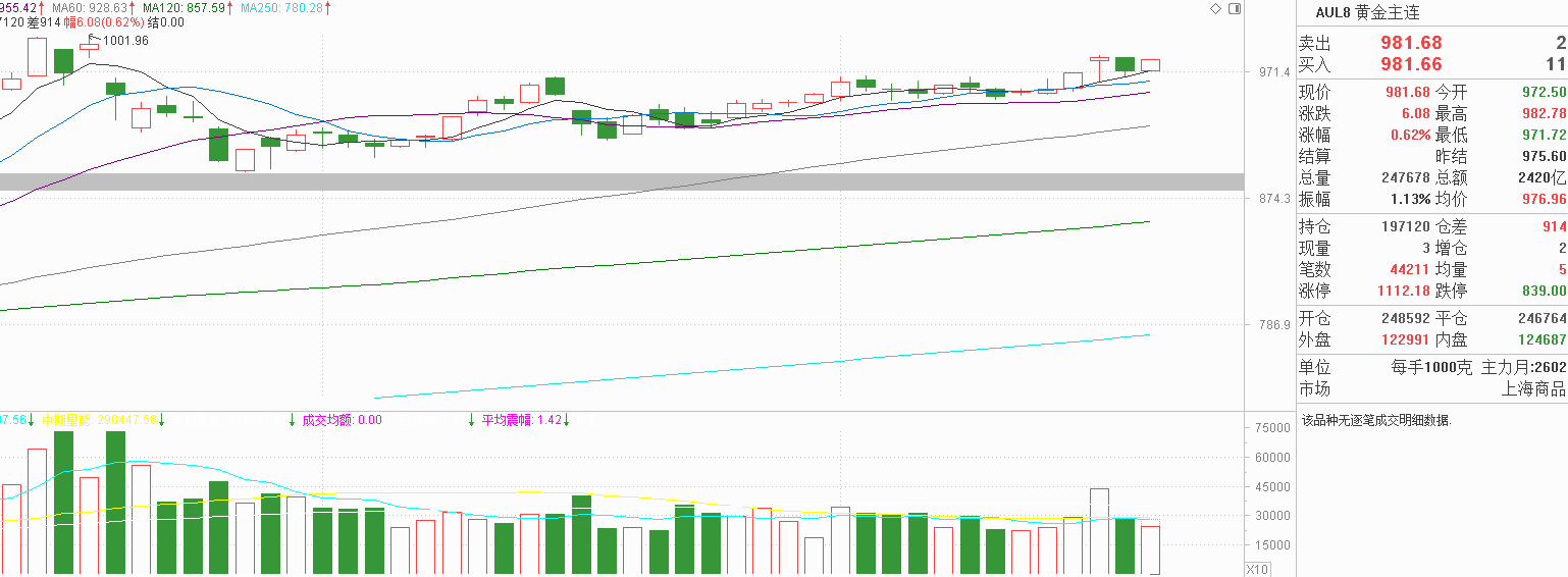 这时候真的要考验你的盘感了!啥叫盘感?就是对市场情绪、对节奏的把握!没有这种跟市场较劲的天赋,我劝你干脆别乱动了!要么就在箱顶附近落袋为安以后不玩了;要么就在箱底潜伏死挺着不动也不再轻易减仓!我比较笨,我会选择后者,因为我知道,黄金当下还是大趋势上行,顺势而为更重要。