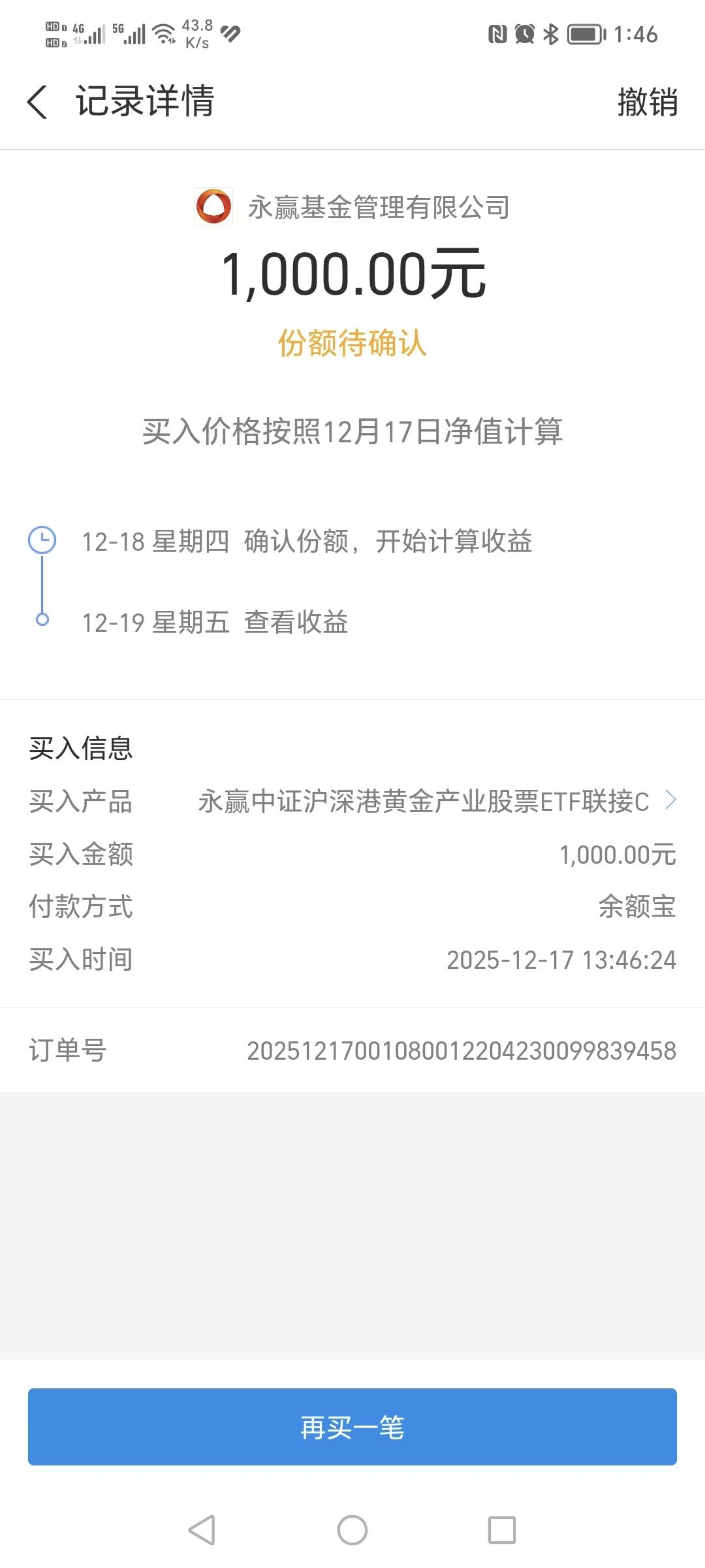 我一直不明白,黄金价格一直上行,近期黄金产业居然没有反应这个最强的基本面,难道与传闻中的市场流动性有关?今天加仓$永赢中证沪深港黄金产业股票ETF发起联接C(OTCFUND|020412)$ 1000元,这个品种跟踪的是中证沪深港黄金产业股票指数,说白了就是跟踪黄金上游企业,我们知道黄金的开采成本基本没变,黄金价格上涨,黄金上游戏企业的盈利计算就是销售价格减去成本价格,实打实的大幅抬升,明显增厚了这些企业的业绩。不同于科技题材在担心技术迭代引起的轮动,黄金产业只要盯着黄金价格就能知道估值到底合理不合理。进入12月底,市场上都在说流动性的问题,我认为永赢中证沪深港黄金产业在这方面也受到影响昨天出现较大的回撤,现在黄金继续向上说明基本面并没有问题,当然继续把握起来。