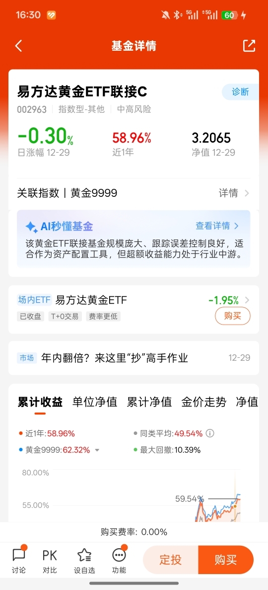 #我的年度投资操作# $易方达黄金ETF联接C$ 2025年黄金板块的史诗级行情中,我没有跟风追高或盲目投机,而是凭借对宏观逻辑的把握和严格的操作纪律,收获了超出预期的收益,这也是全年最让我安心的一笔投资。