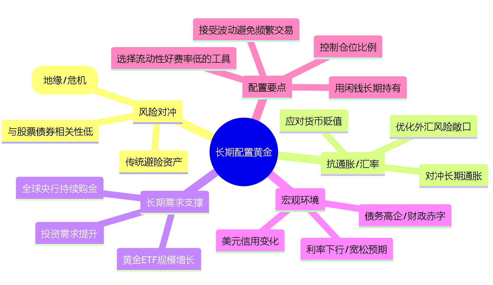 话说回来,这种因为一个新闻就暴涨暴跌的,恰恰说明了黄金的“脾气”。我们买黄金ETF,图的绝对不是去赌明天又出什么黑天鹅,然后精准抄底逃顶。那为啥还要长期拿住它呢?给大家画了张图: