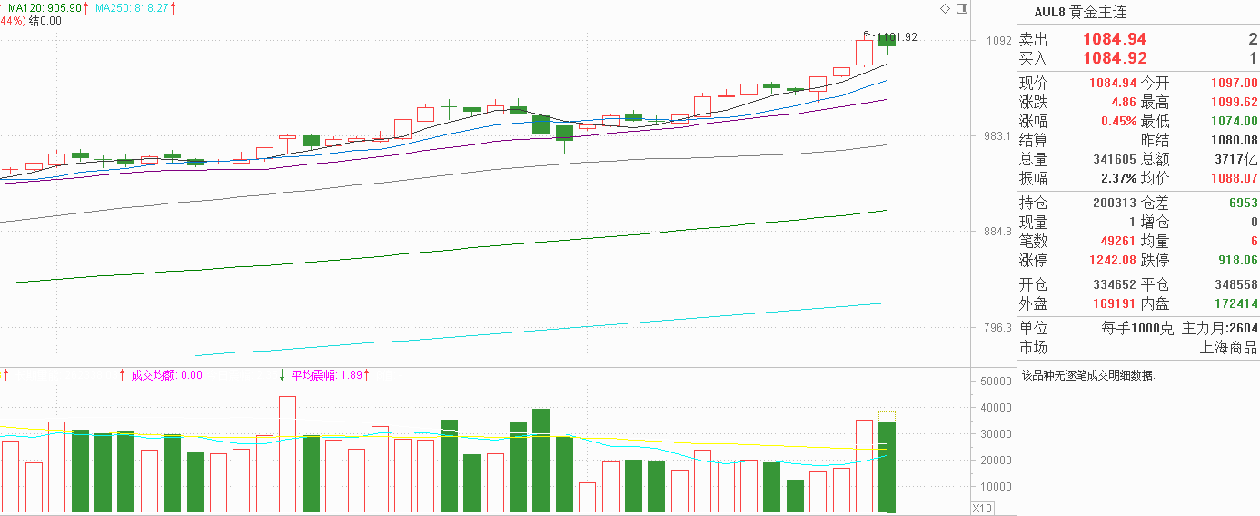 黄金昨天中阳反弹创新高,资金流入信号是明显的,但我说了,本次黄金上涨逻辑并不是降息预期,而是地缘消息,消息影响比较大。今天消息面缓和,黄金出现高开低走很是正常,但资金流出态度并不明显,起码5天线并没有失守,周一探底回升小阳突破的核心阳线被10天线保护起来,先知先觉的资金没有损失,不排除接下来还有地缘消息方向的刺激,作为散户,我们既没有渠道了解,也没有主力这么大的资金量,应该要看趋势,即当下黄金是不是上涨的,如果黄金上涨趋势未变,尊重市场顺势而为是核心,上涨途中的震荡是难免的,如果每一次震荡都要回避,其实与在震荡市中试图把握黄金每一次高低点一样,很容易会被主力资金清洗出局,拿稳了才是最后的赢家。
