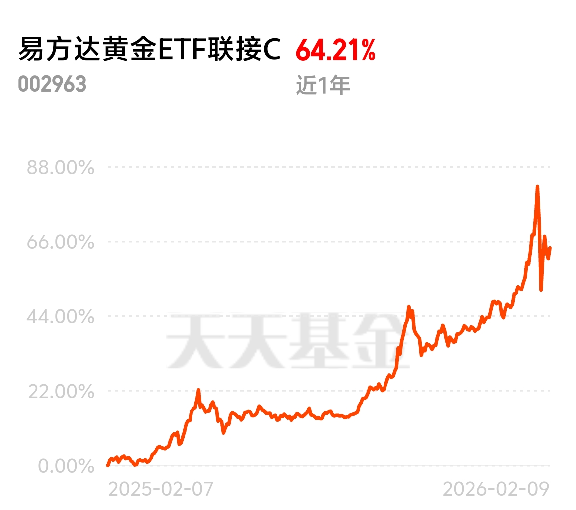 我在#热点快闪:震荡持续,大宗商品行情到哪了?# 选择了黄金,当前黄金市场正迎来避险需求与降息预期的双重利好,叠加全球地缘局势持续动荡,金价在历史高位维持强势震荡,$易方达黄金ETF联接C$作为跟踪国内黄金现货的优质工具,迎来重要配置窗口。从行情来看,2026年以来黄金价格屡创新高,伦敦金现站上5000美元/盎司关口,国内黄金T+D、沪金主连同步走高,易方达黄金ETF联接C净值亦水涨船高,近12个月涨幅超60%,2月9日单日涨幅达2.10%,紧密贴合金价走势。