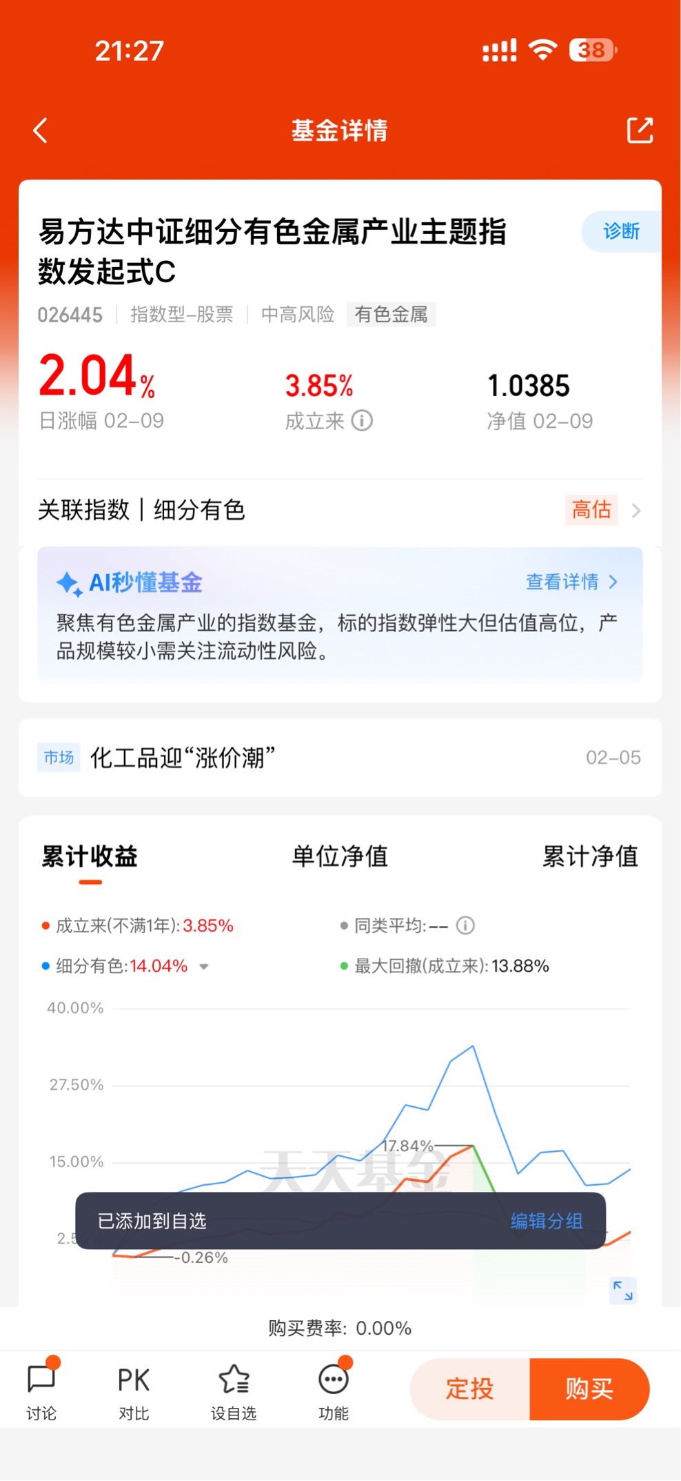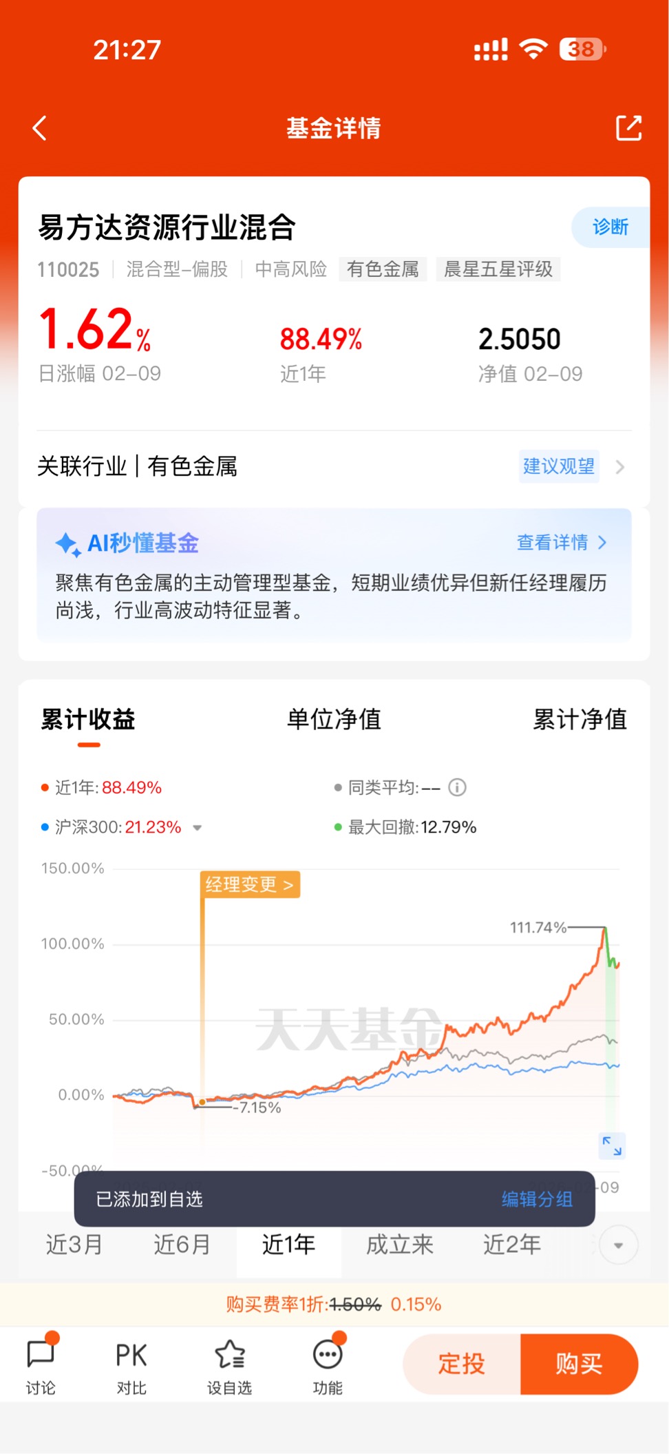 费率省到看得见:C类份额没有申购费,持有满30天赎回费也为0,每年只收0.5%的管理费和0.35%的销售服务费。对比银行纸黄金的点差费、实物黄金的手续费,长期持有能省下不少成本,真正做到“低成本赚金价上涨的钱”。