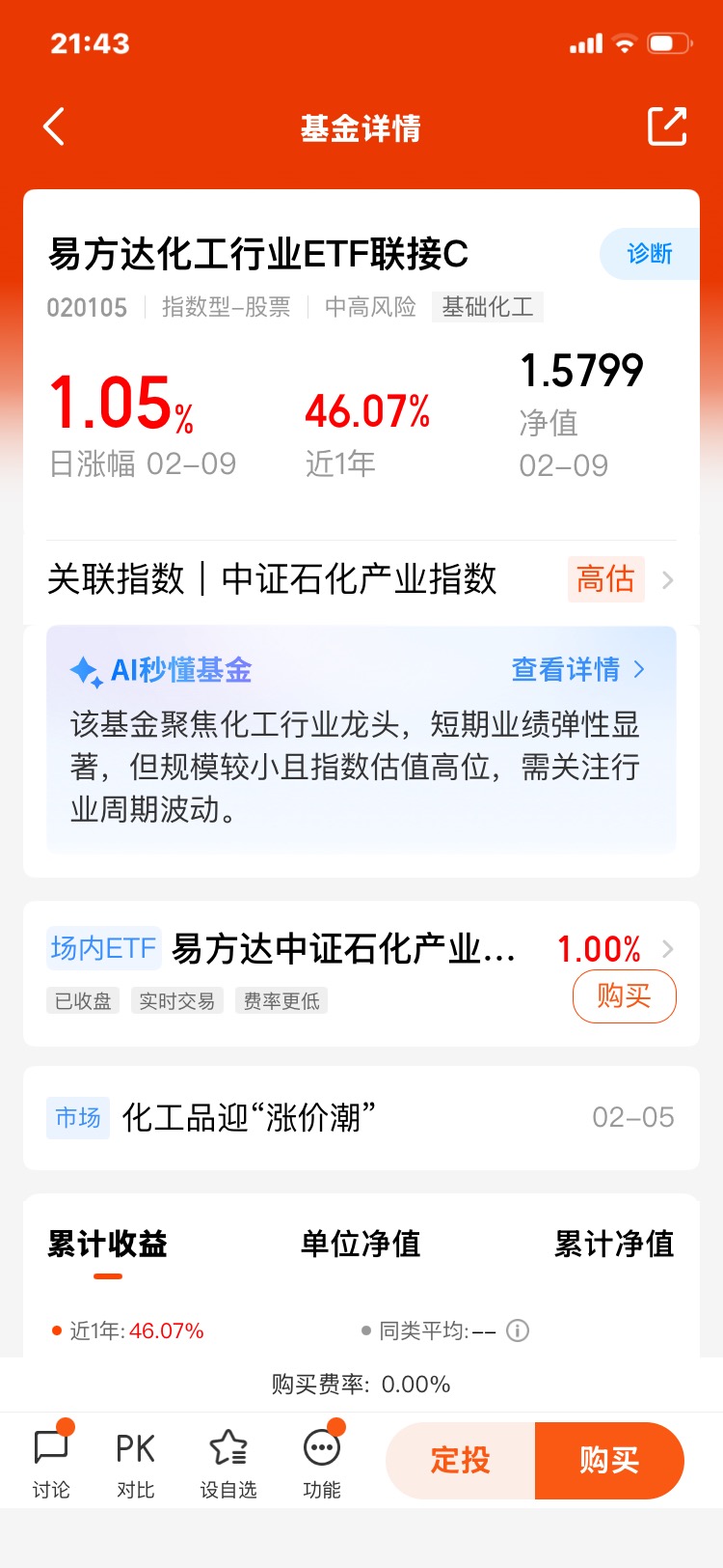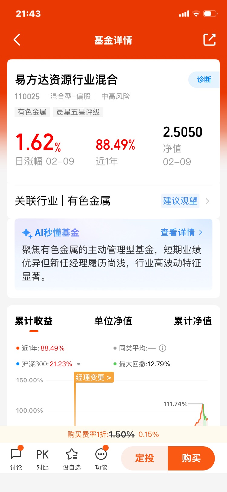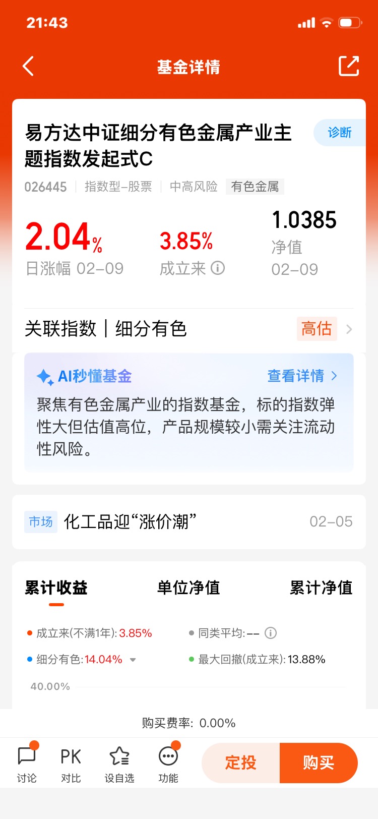 申购费:0 元!不用花一分钱就能买入,不像很多基金要收 1%-1.5% 的申购费;