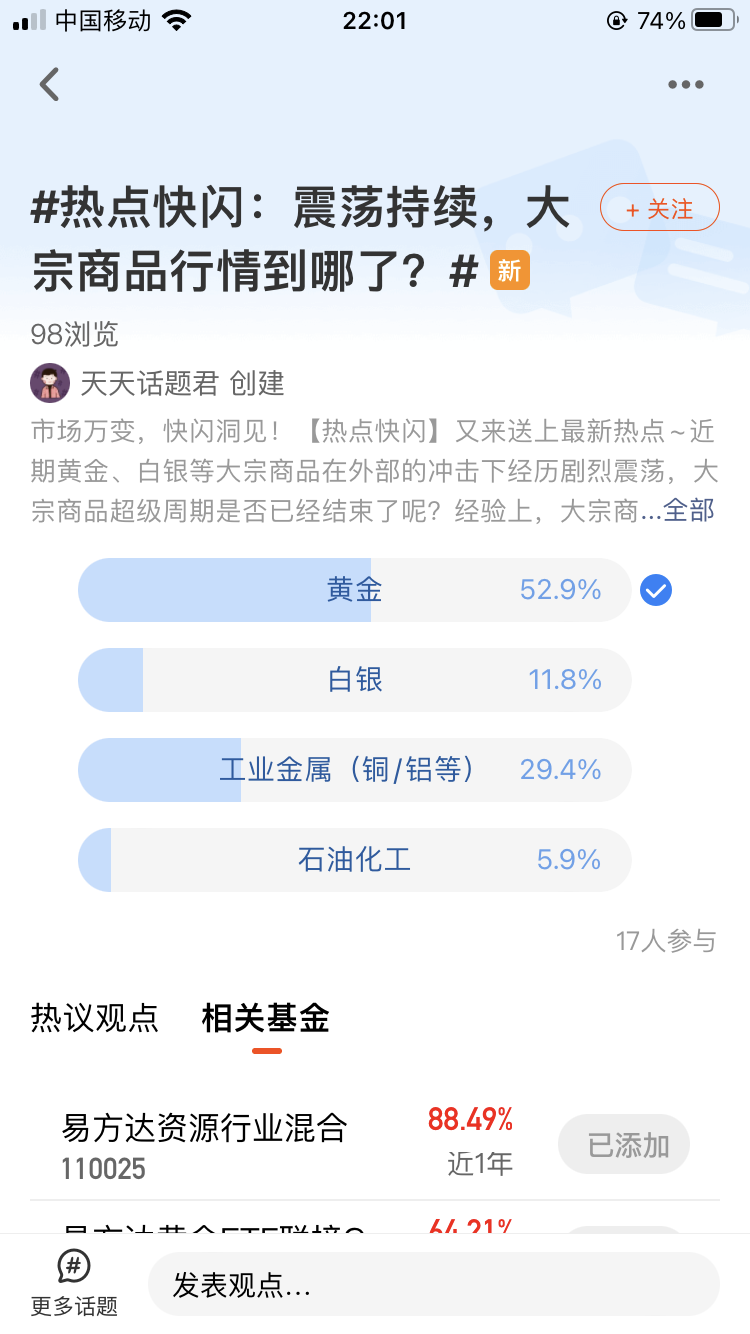 说到底,震荡市选品种,拼的不是谁的弹性大,谁能赚快钱,而是谁的逻辑更硬,谁的风险更低。黄金的避险逻辑和降息逻辑,一个能托底,一个能抬升,两个逻辑叠加在一起,在大宗商品里算是独一份的。对于我们普通投资者来说,选一个逻辑确定、波动可控的品种,比抱着侥幸心理去追那些看似利好满满、实则风险重重的品种,要实在得多。毕竟投资的路还长,稳稳的幸福,才是最难得的。@易方达基金