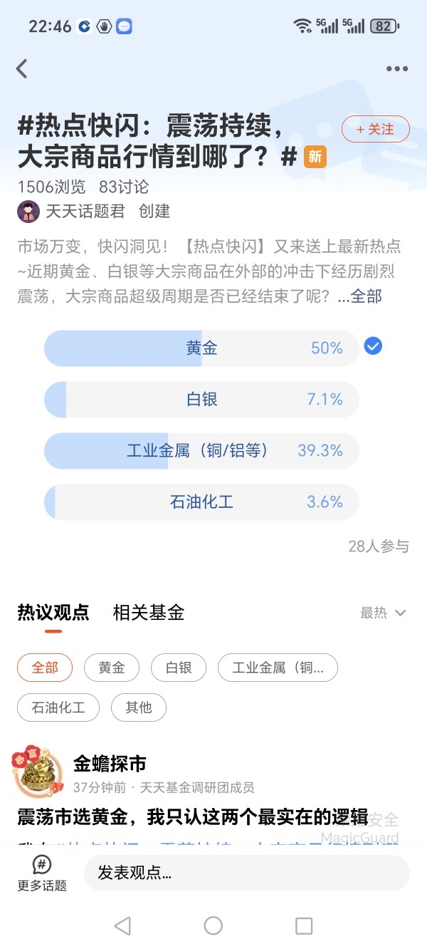 我在#热点快闪:震荡持续,大宗商品行情到哪了?# 选择了“黄金”,金价上涨的核心逻辑是美元信用弱化和全球“去美元化”。美国债务都快到40万亿美元了,大家担心美元贬值,自然转向黄金。再加上美联储降息预期,黄金作为无息资产吸引力更大。易方达黄金ETF门槛低,10块钱就能买,而且流动性强,场内场外都能交易。定投帮我解决了“什么时候买”的难题,每月固定投入,市场跌了多买份额,涨了少买份额,长期下来反而能赚到平均收益。黄金是硬通货,现在配置一点,未来心里更有底,这种稳中求进的感觉特别适合我。