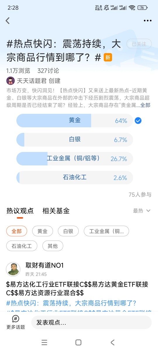 我投票选择黄金,理由是看好避险逻辑+降息周期双重支撑,在大宗商品持续震荡格局中优势突出。当前全球地缘不确定性仍存,市场风险偏好偏弱,黄金作为传统避险资产,配置需求持续提升;同时美联储降息周期逐步落地,实际利率下行将降低黄金持有成本、弱化美元优势,形成趋势性上涨动力。相比工业金属受产业周期影响、石油依赖供需改善,黄金逻辑更清晰、防御性更强,在震荡市中兼具稳健性与上行空间,是当前更具确定性的选择。@易方达基金
