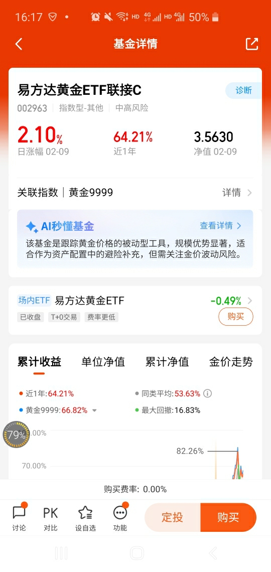 投资黄金,推荐关注:$易方达黄金ETF联接C(OTCFUND|002963)$,其紧密跟踪黄金9999指数,为投资者提供参与黄金市场的标准化工具。@易方达基金 #晒收益#