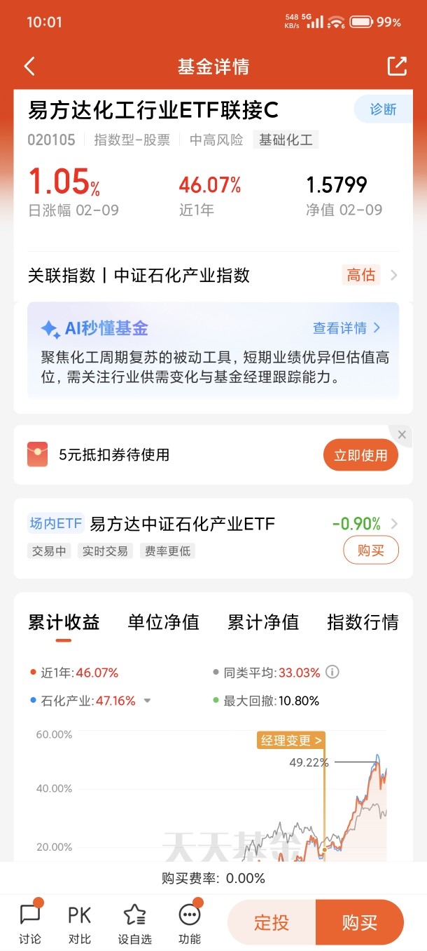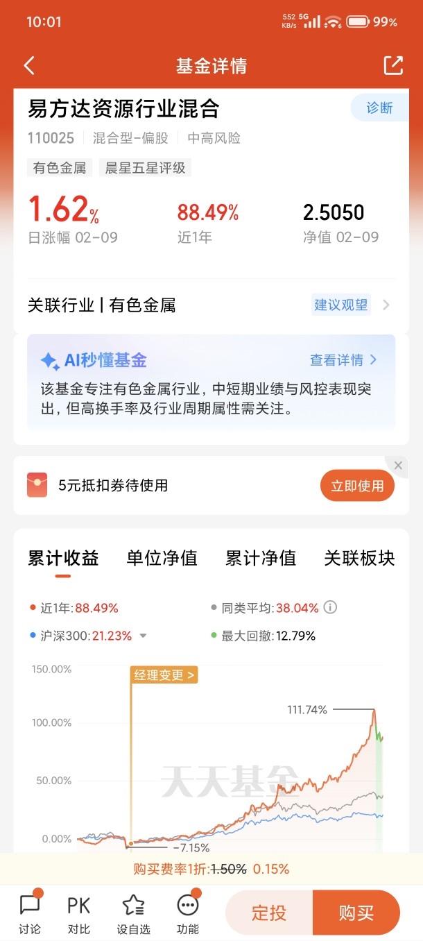 这只基金近一年投资收益64.21%,远超同类平均。近期金价波动背景下,产品展现出抗风险能力,我已经持有了一部分,目前整体收益还不错的,我后续会持续加厚仓位,长期看好这只基金的表现。
