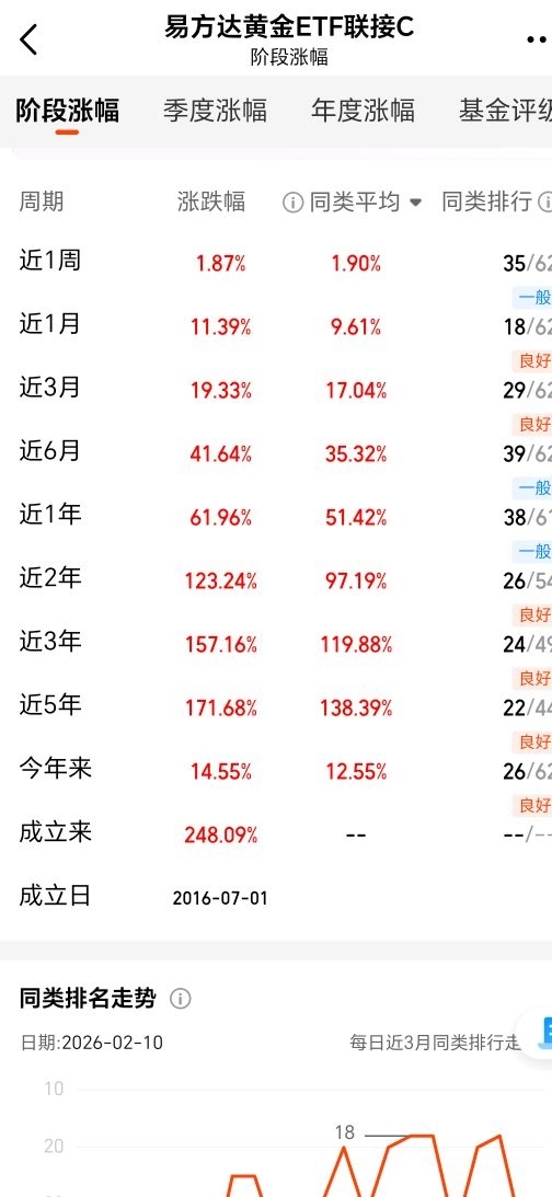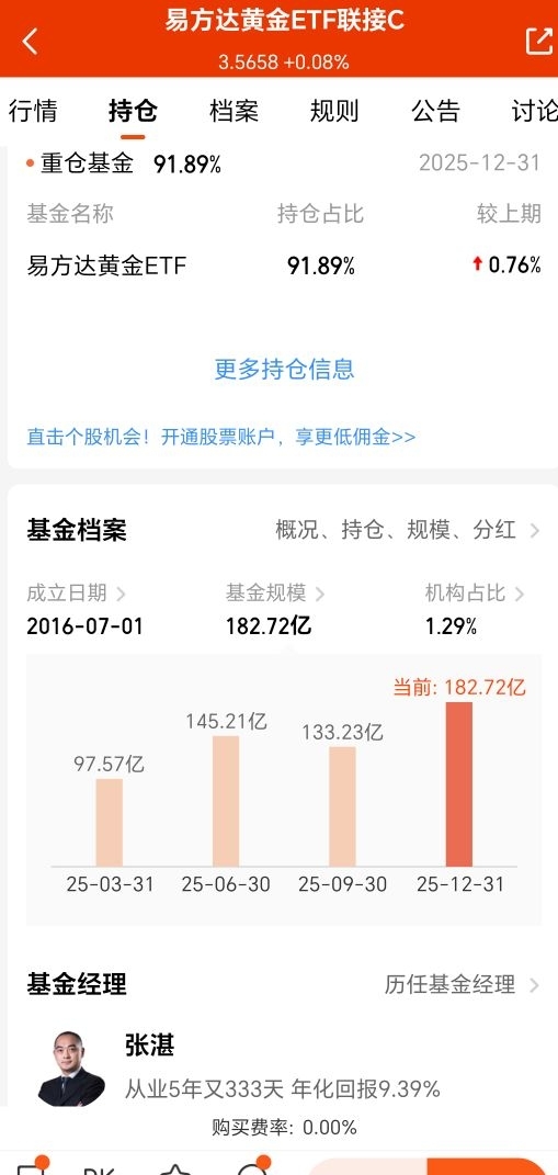- 基金名称:易方达黄金交易型开放式证券投资基金联接基金(C类)