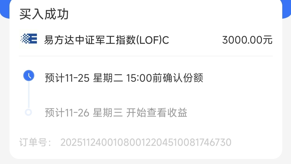 $广发中证军工ETF联接C$ #今年买基金赚了多少钱?#