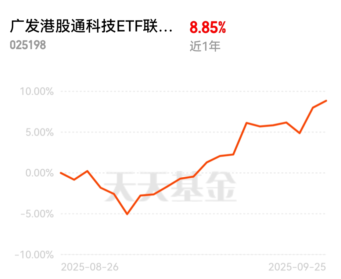 现在还不上车港股后面大红涨得停不下来可没你份,我拿$广发科技025198$有段时间了,基本都是长红的,爽!$广发港股通科技ETF联接C$