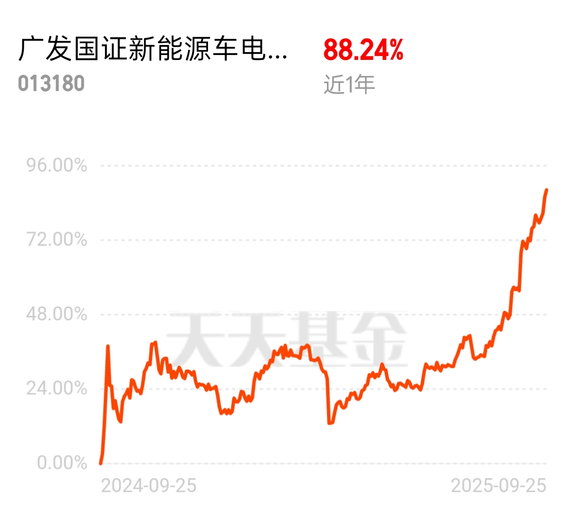 $广发国证新能源车电池ETF联接C$难怪这段时间动不动上天天基金热搜榜,这么能涨