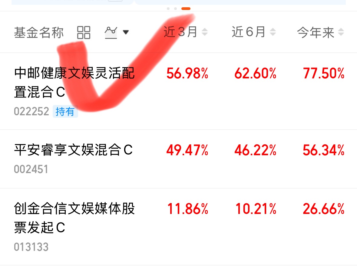 过去三个月,$中邮健康文娱灵活配置混合C$ 涨了62%,主要投健康文娱,也碰点电子板块,比同类基金涨得多,我继续加仓。