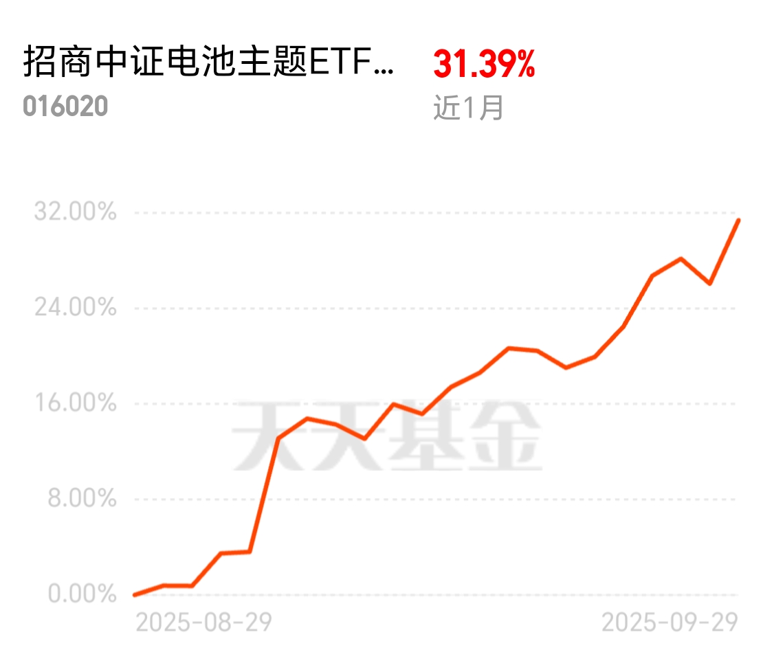 昨天电池板块行情给力,今天指数往上冲。这指数选的都是行业精英,固态电池占比高,招商中证电池主题ETF联接C近1个月31.39%,跟着行情走准没错。$招商中证电池主题ETF联接C$