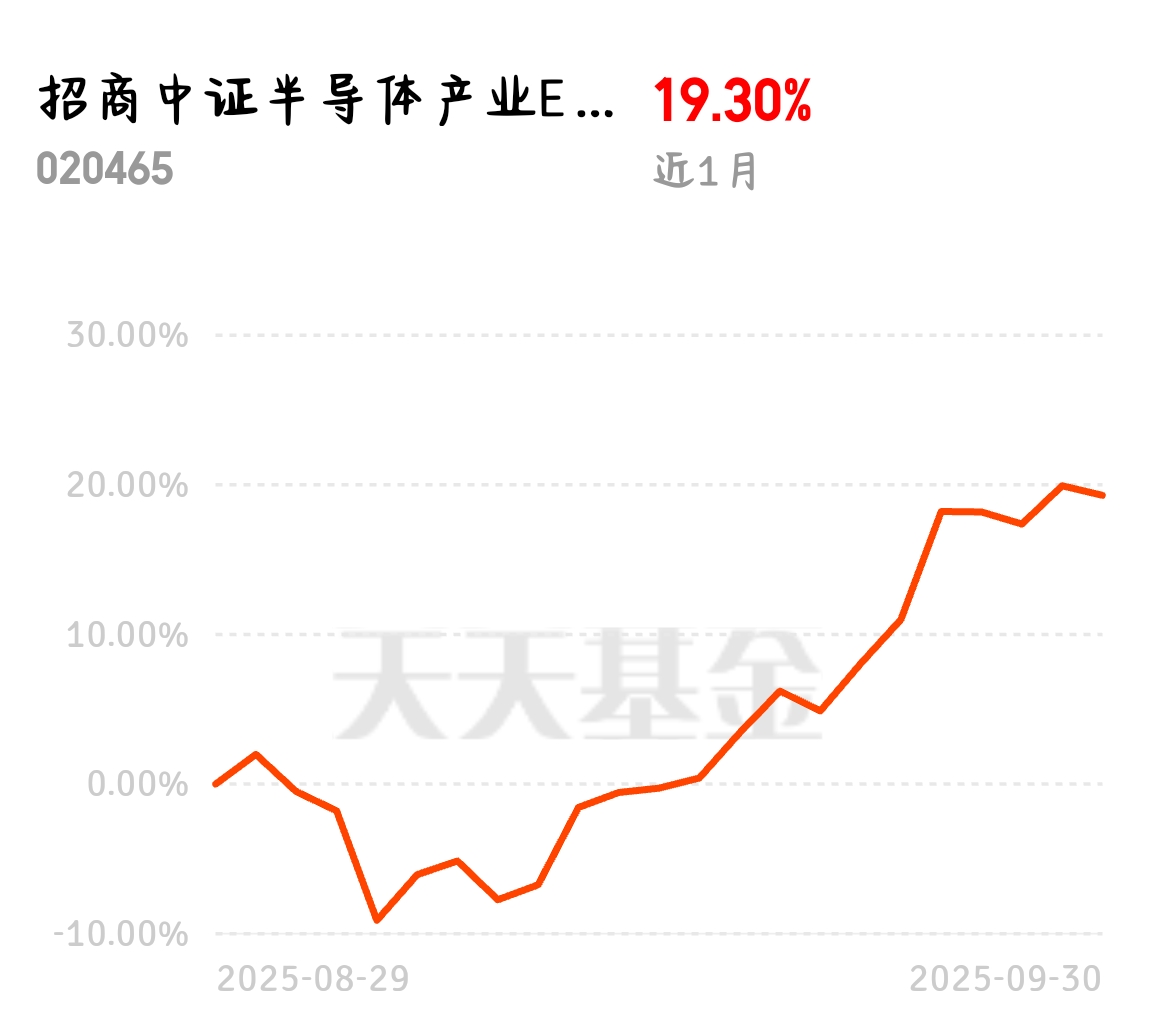半导体最近火,资金关注高,板块拉。招商中证半导体产业ETF联接C近1个月19.3