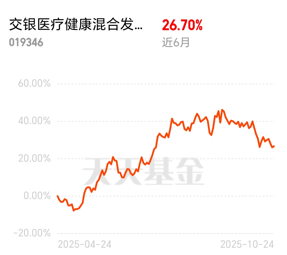 $交银医疗健康混合发起C$半年的收益达到了26.70%,继续加油呀