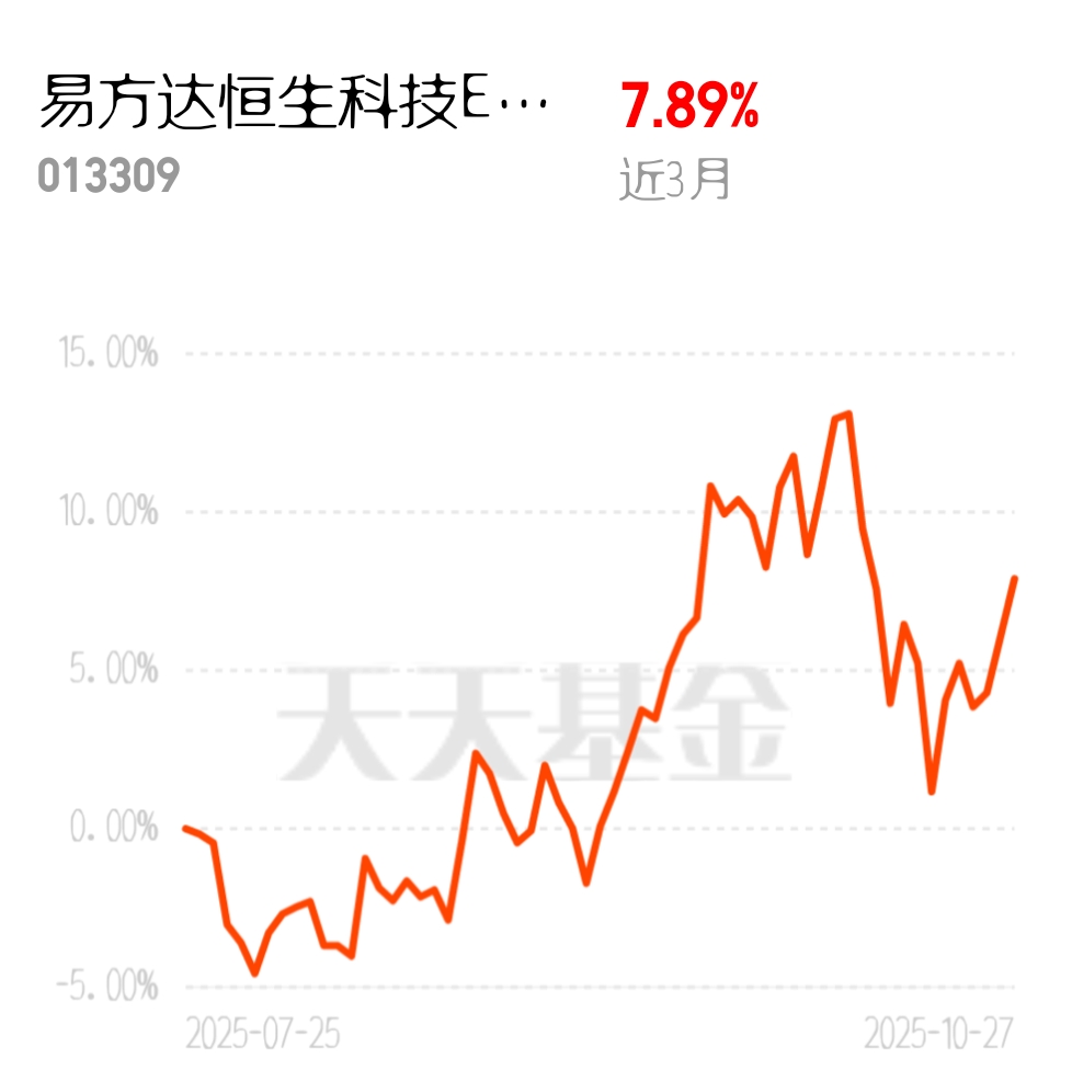 不少科技大厂的股价开始反弹,带动整个板块估值重构,机会来了。易方达恒生科技ETF联接(QDII)C近3个月涨了7.89%,能快速跟上反弹节奏。
