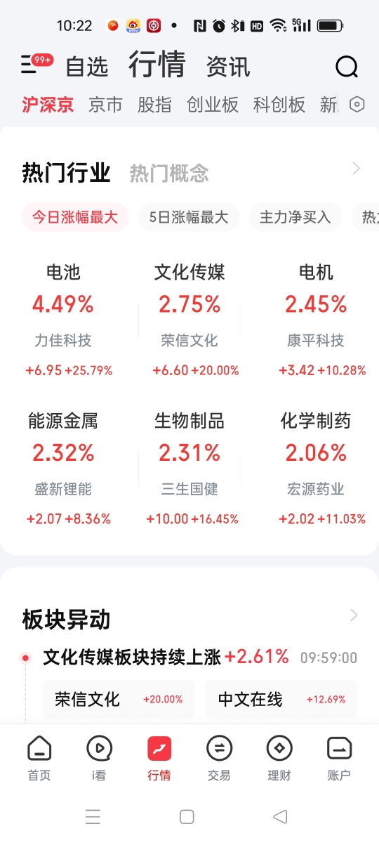 今天上午的热点是电池、电机、文化传媒、生物制品、医药医疗、汽车零部件等。