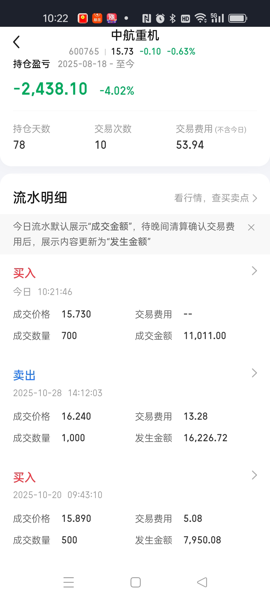再来说持仓的几个票,上午代码:600765中航,我又买进去700股,上次是16.20抛出1000股,目前持仓3700股
