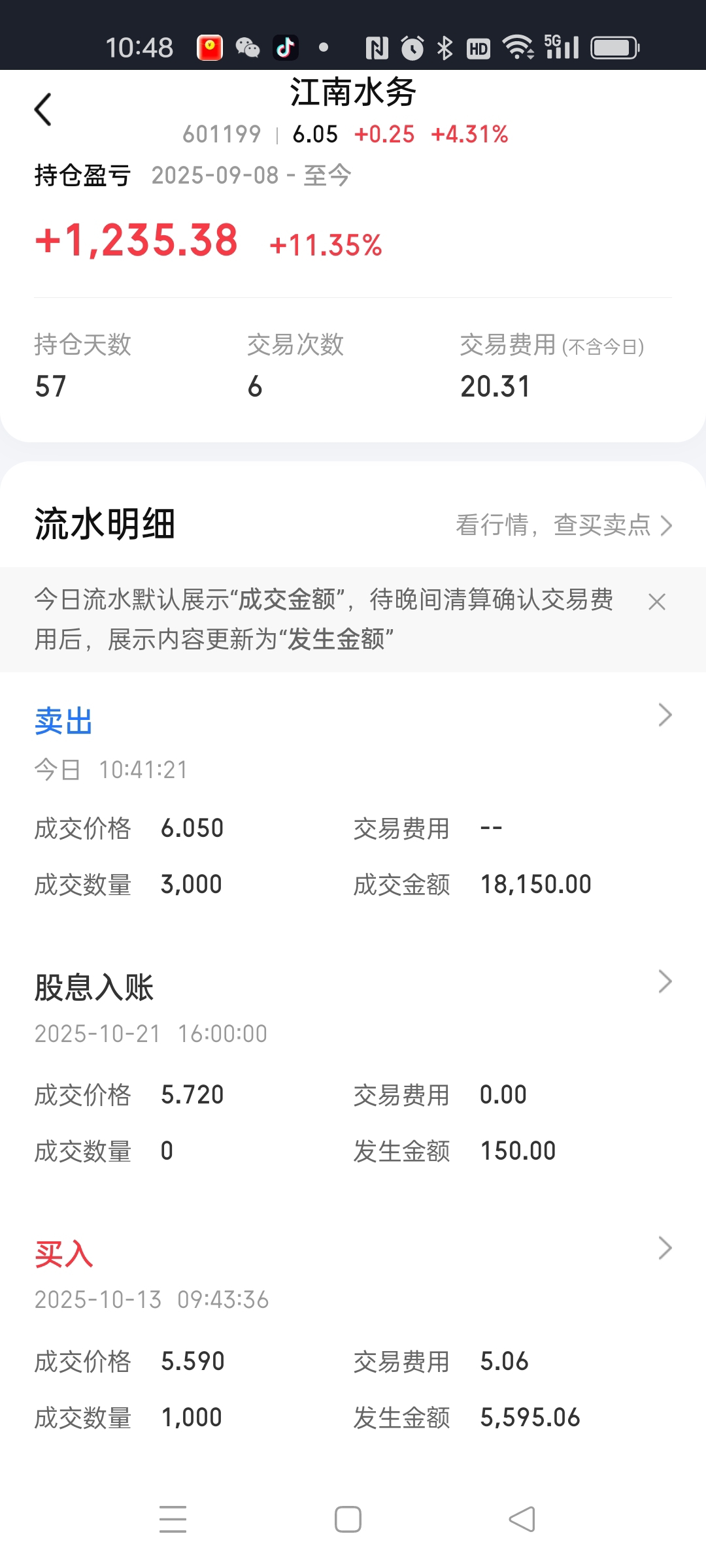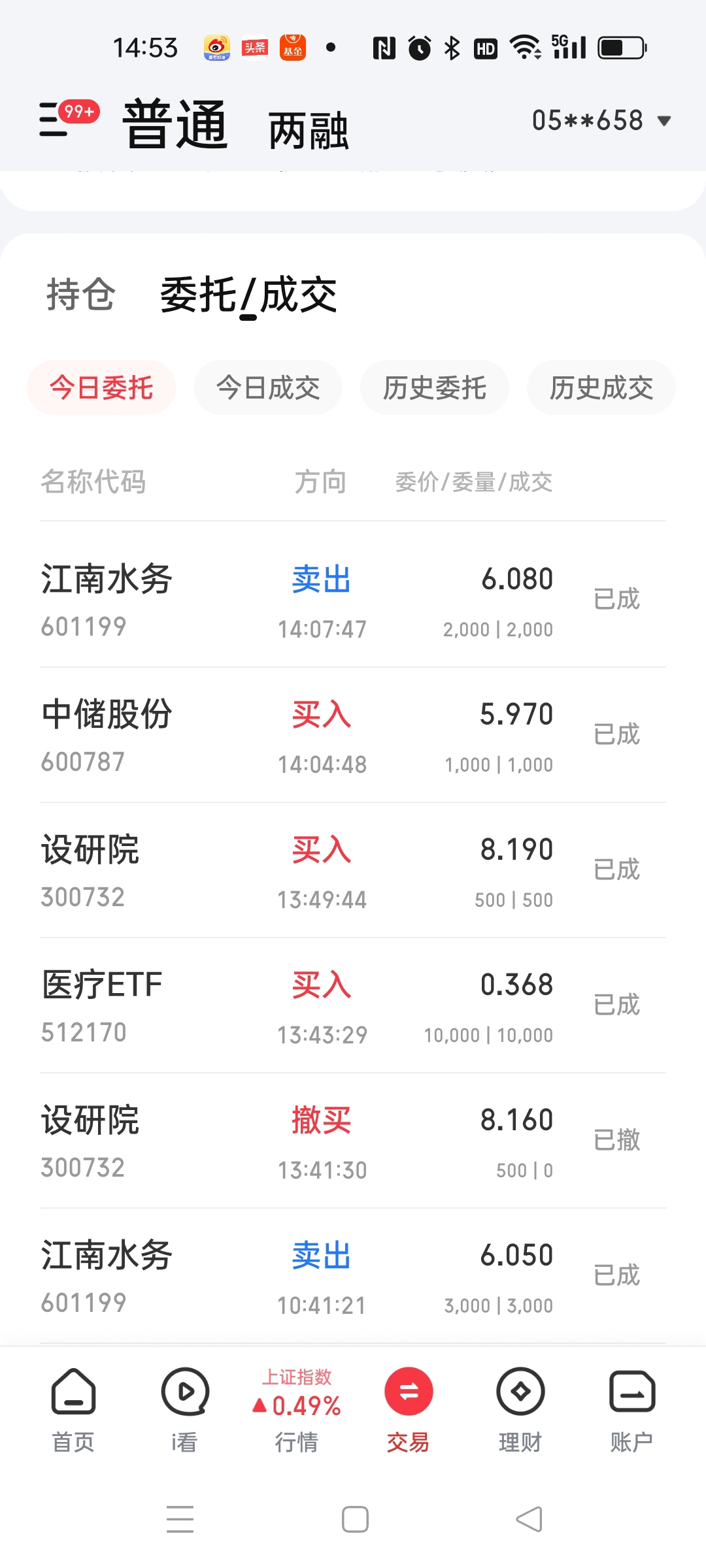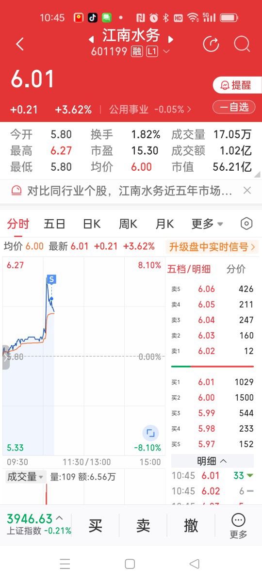 。601199水务,上午拉升起来,也快速去过涨停又下来,我赶紧抛出5000股,不贪心,6.05先出3000股,落袋再说,暂留2000股,看下午再说。代码:603169兰石,可惜我没有了,这股上周四涨停,周五跌停,今天周一又涨停,这主力真牛逼,投资者要是节奏把握好的话,那是成绩很好了。
