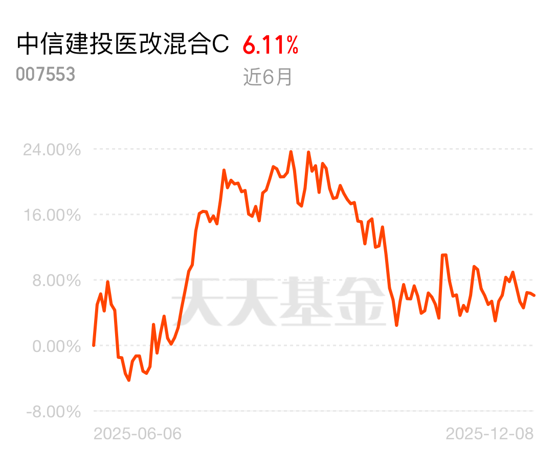 中欧医疗健康A近期也在回调,我趁低加了点中信建投医改C。它这月涨了2%,表现稳健,主要投资A股创新药龙头,跟中欧的广泛布局形成互补,现在估值合理,适合定投。