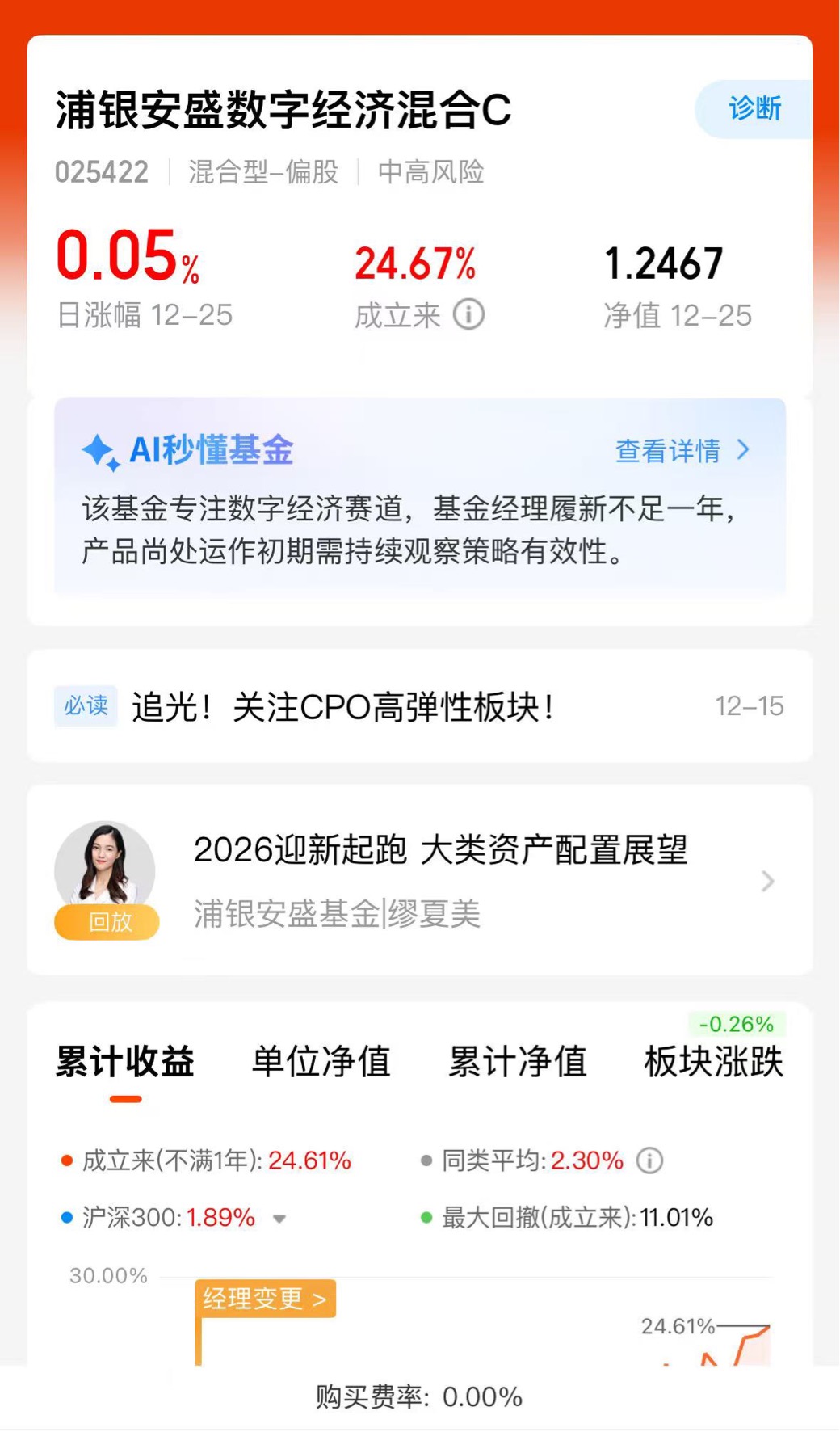 浦银安盛数字经济聚焦CPO今天还是红的,近一个月在竞品里涨的最好$浦银安盛数字经济混合C$