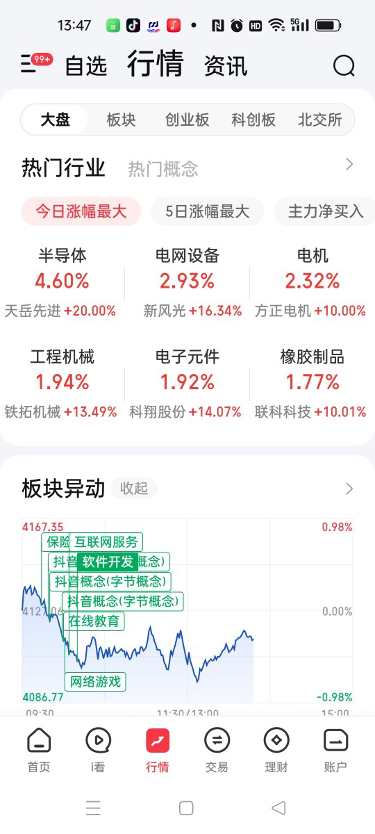 就比如今天芯片半导体、人工智能、科技板块在上涨,也就是所谓的AI应用赛道,那就是要看后面跟风的人有多少推动力了,现在很多追涨的资金,还套在商业航天上面,那剩下的就是另外一批存量资金在搅动,就看能有多少力度了。