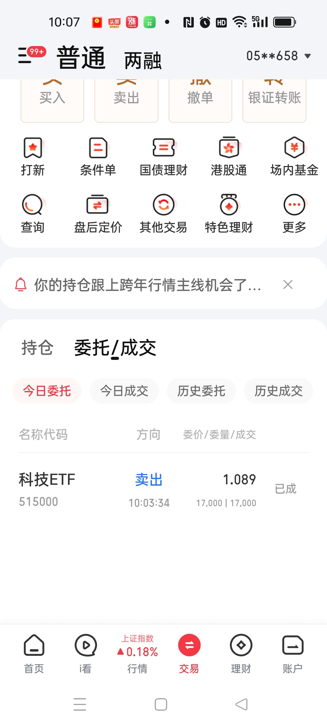 今天我把代码:515000科技ETF给出来了,价格是1.089元,也是属于短线的落袋。场内的ETF基金就是这样的灵活方便交易,比场外的公募基金要交易灵活。只要你有短线中线的操作能力,就能够赚钱,否则也是韭菜花。