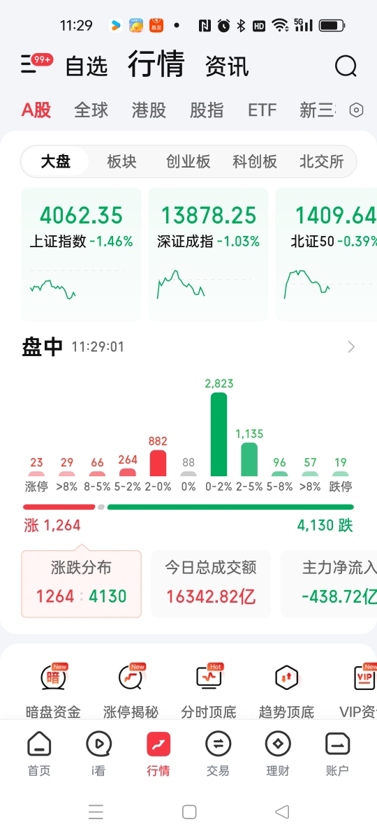 上午我举例沪指数跌51点左右,北证50就跌3点,科创板跌9点,创业板指数跌45点,深成指跌112点,总体来说,跌幅在减弱了,抛盘在降低,抄底盘也是在寻找机会制造热点,就看你站在哪一边阵营了?