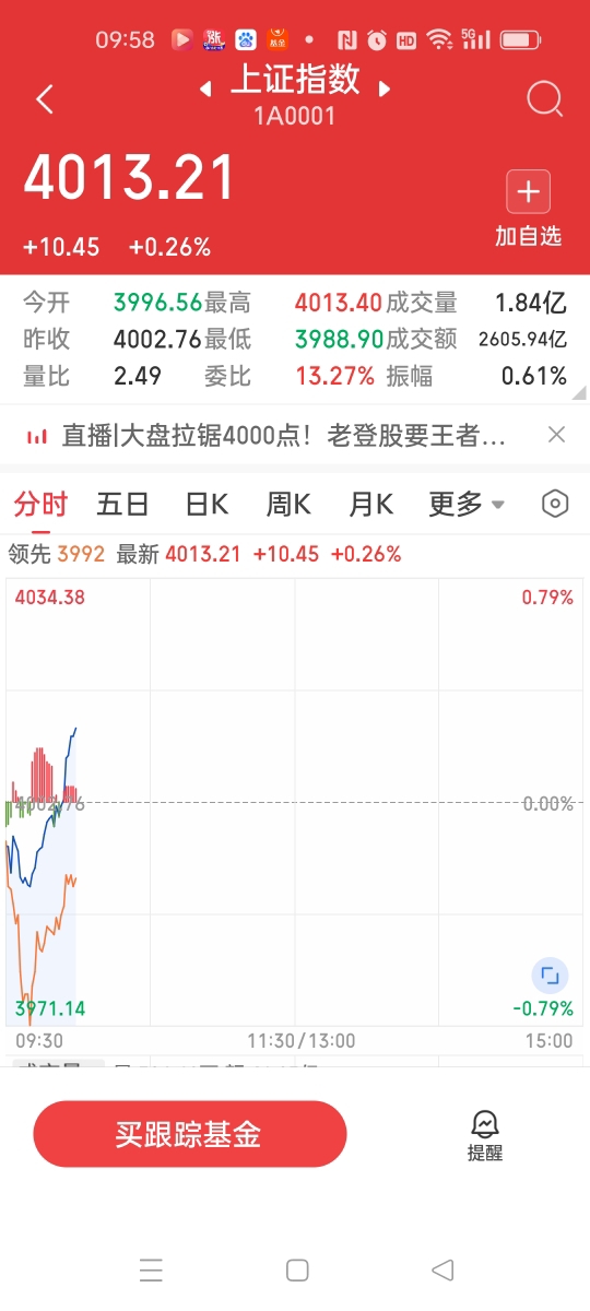 就在上午10点左右,估指数又带头拉升到4012点,5天均线又被窜破了,跃跃欲试的感觉。