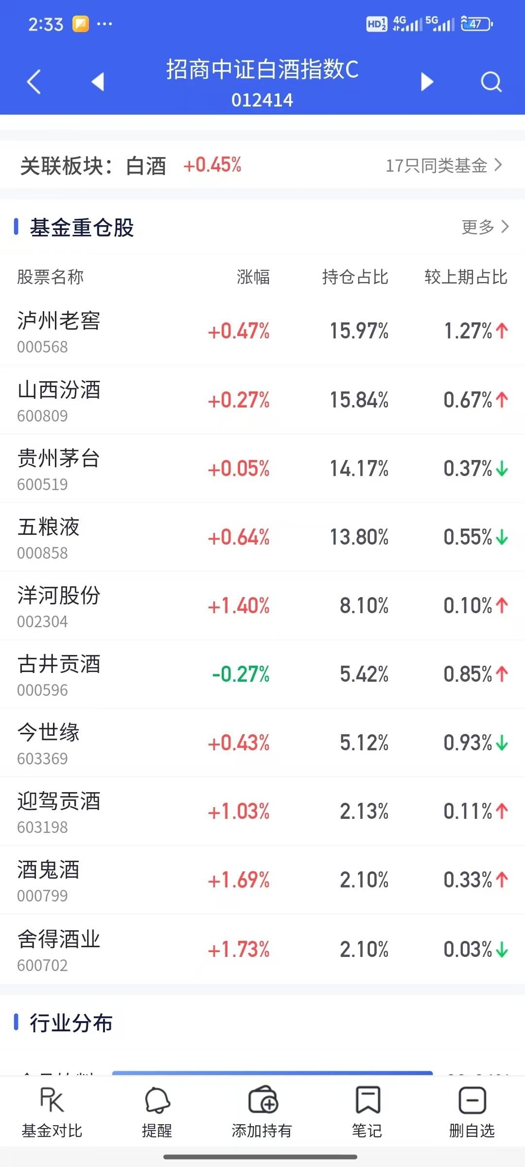 白酒行业库存周转天数环比下降,渠道压力在缓解,今日指数表现不错,资金高切低布局消费很合理。选招商中证白酒指数 (LOF) C,能同步享受行业去库存后的修复红利。