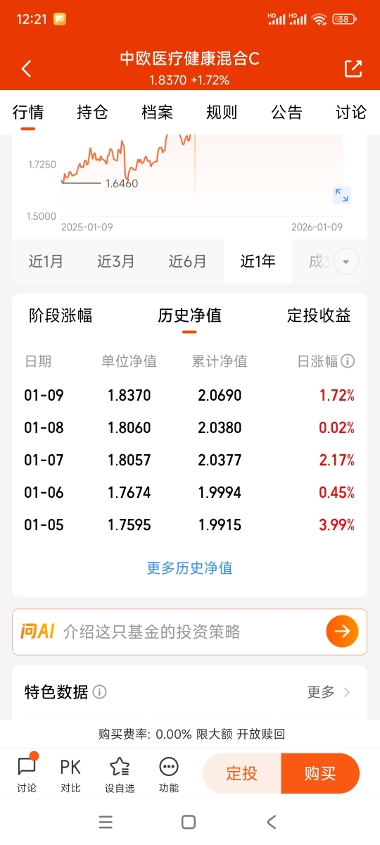 $中欧医疗健康混合C$最近拉升的不少,医药位置不高,回调一下继续涨的概率大