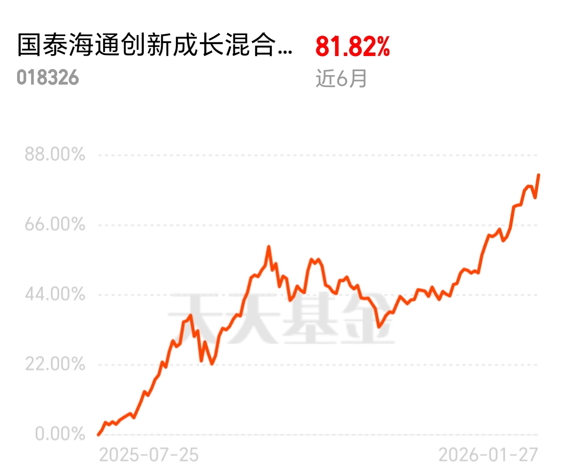 国泰海通创新成长混合发起C的短期涨势太猛了,近6月81.82%,深耕半导体优质标