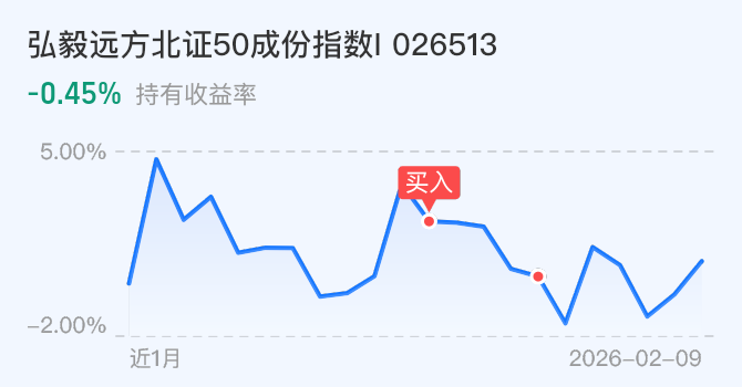 $弘毅远方北证50成份指数I$跟踪的北证50指数这会看跌0.4%左右,20日均线承压,看能不能给力一些,一举突破呢。