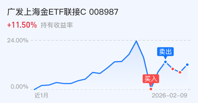 跟踪的黄金9999这会看涨0.4%左右,黄金股是跌的,我今天不加黄金了,加点黄金股。$广发上海金ETF联接C(OTCFUND|008987)$