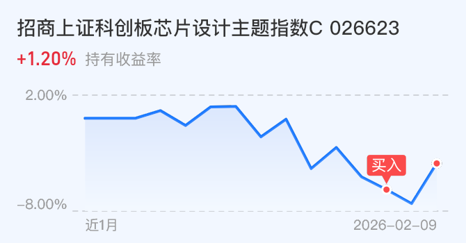 跟踪的科创芯片设计这会看涨1.1%左右,昨天加仓,今天吃肉,我这只持仓不动,T点盈利的半导体材料设备。$招商上证科创板芯片设计主题指数发起式C(OTCFUND|026623)$
